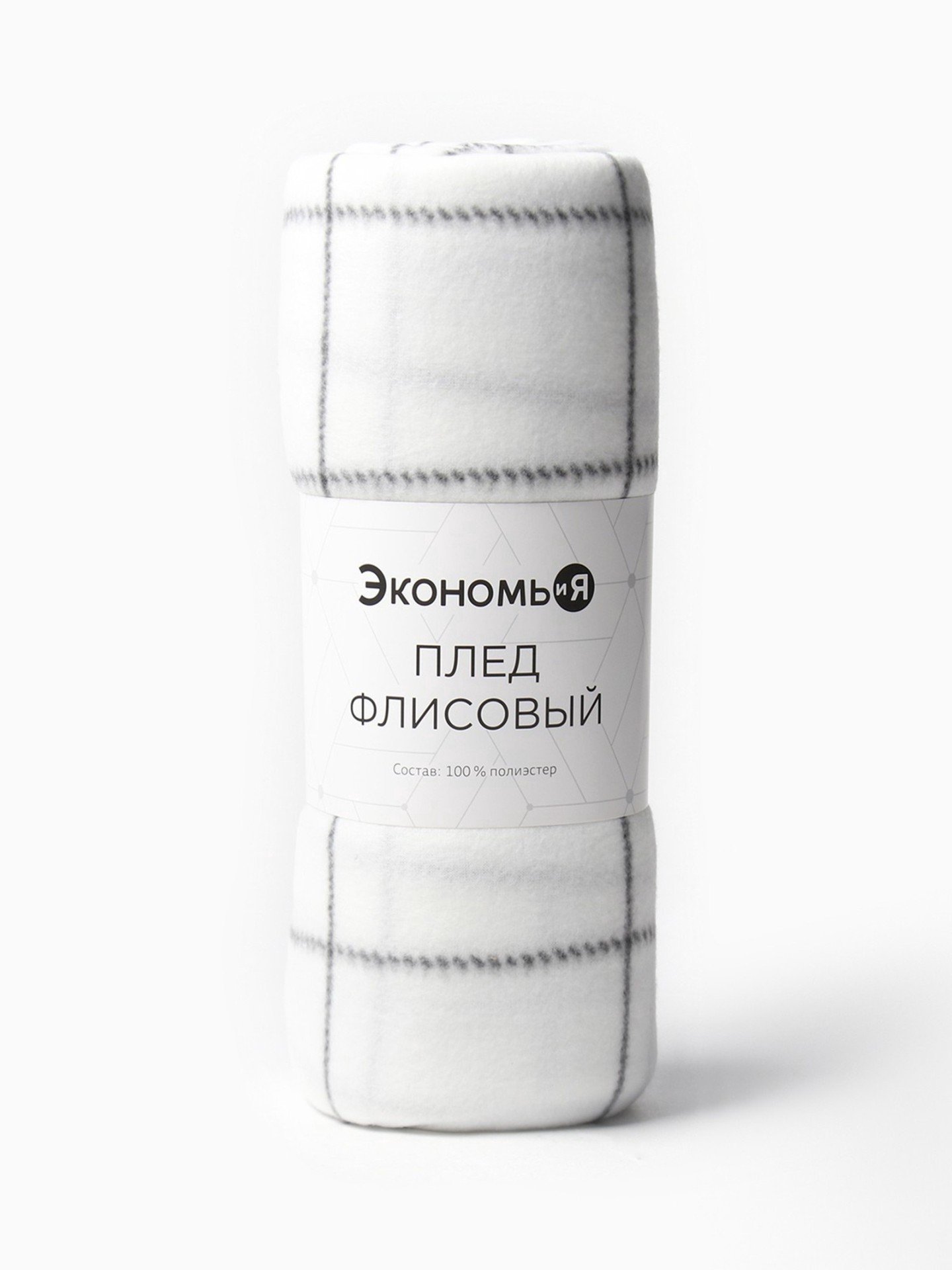 - Плед Экономь и Я Клетка 150х180см флис, белый