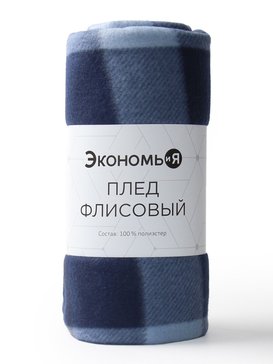 - Плед Экономь и Я Клетка 150х180см флис, синий