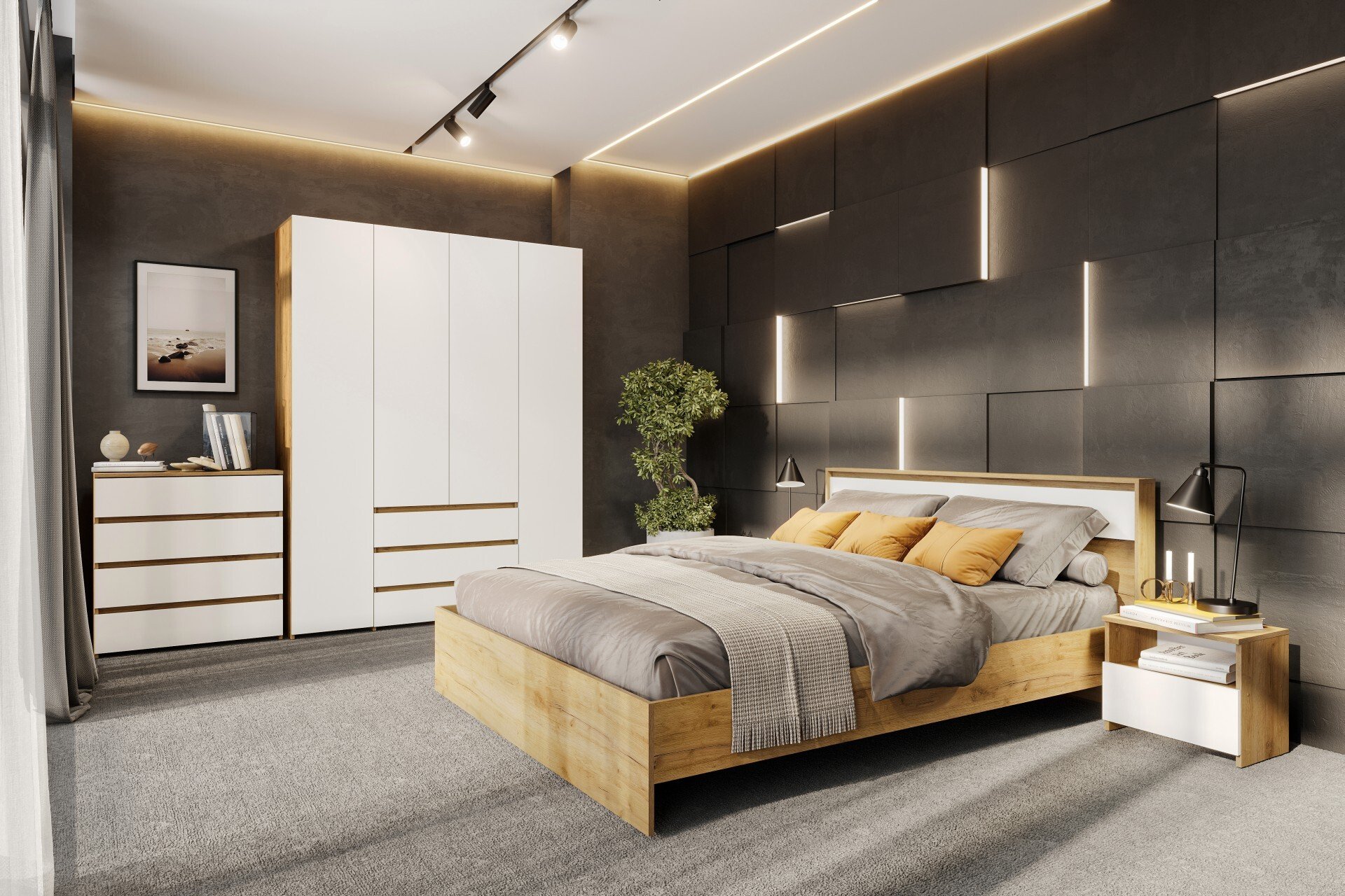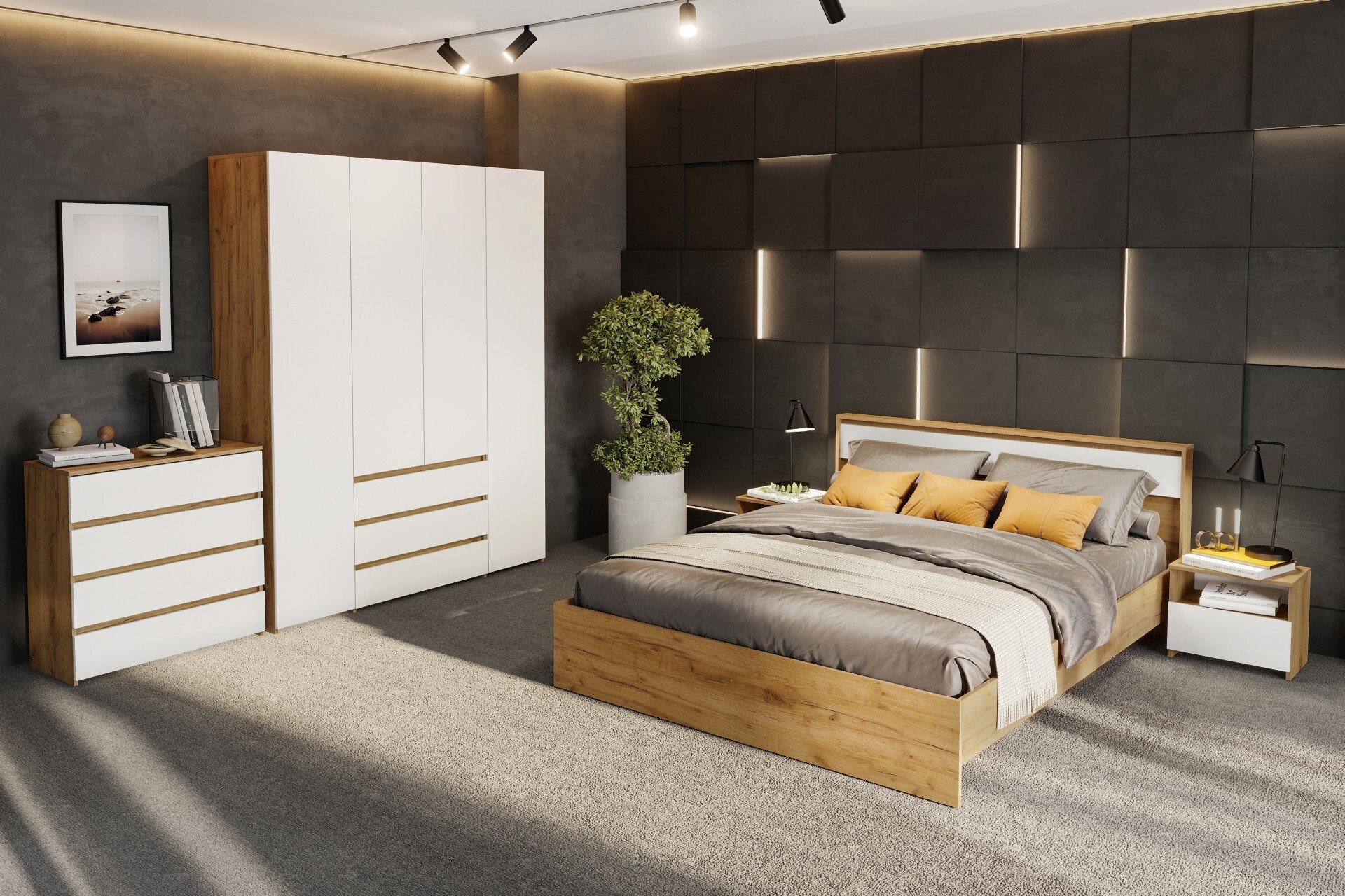 Сочетание теплого оттенка "Дуб золотой" и классического белого цвета создает современный и элегантный внешний вид, который легко вписывается в различные интерьерные стили - от скандинавского до неоклассики.