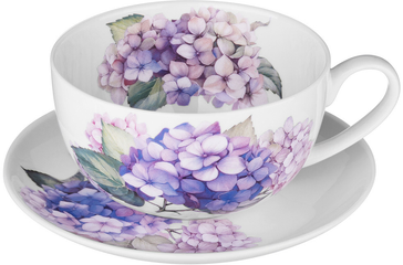 Коллекция включает наборы посуды, обеденные и закусочные тарелки, кружки, салатники, чайные пары и чайные наборы. Каждый предмет достоин стать подарком по любому поводу, а несколько предметов коллекции создадут неповторимый интерьер и настроение. Выбирайте и дарите предметы этой коллекции по любому случаю Вашим любимым, родным и знакомым. Гортензии очаровательны. При дарении они точно вызовут массу положительных эмоций и будут оценены по достоинству.