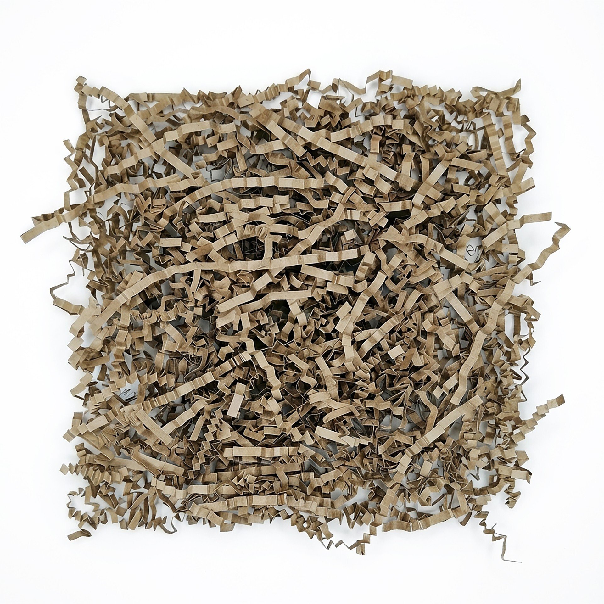Наполнитель представляет собой тонко нарезанную крафтовую бумагу, скрученную в стружку или мелкие завитки. Это 100% бумага, без примесей и синтетических материалов.