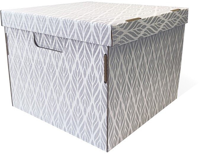 Красивый растительный рисунок с изображением листьев придает коробке природный, уютный вид. Такой дизайн отлично вписывается в интерьеры в стиле эко, прованс, скандинавский, добавляя помещению тепла и гармонии. Коробку можно не прятать в шкаф, а разместить на открытой полке.
