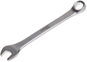 12-гранная накидная часть обеспечивает плотный захват и равномерное распределение нагрузки, снижая риск повреждения граней крепежа. Рожковый конец позволяет быстро установить ключ даже в труднодоступных местах или под углом. Усиленная конструкция выдерживает значительные крутящие нагрузки без деформации. Термообработка и высококачественная сталь гарантируют длительный срок службы. Хромированное покрытие не только защищает от ржавчины, но и облегчает чистку после работы.